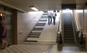 Hoe zorg je er voor dat meer mensen de trap nemen? Nou, door dat aantrekkelijk te maken. Hij maakt ook echt geluid. Resultaat: 66% toename van trapgebruik.